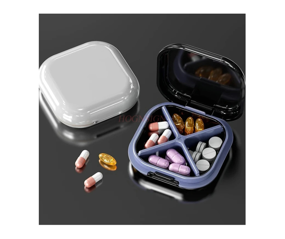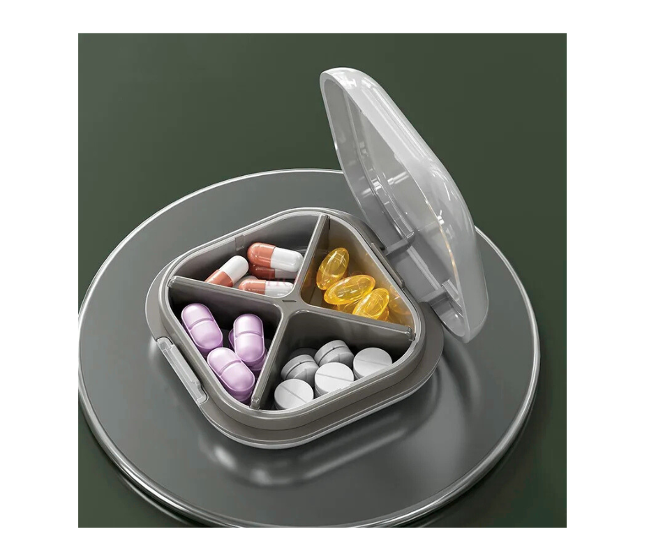 Die Box hat 4 separate Fächer, damit Tabletten, Vitamine oder Kapseln übersichtlich getrennt sind.