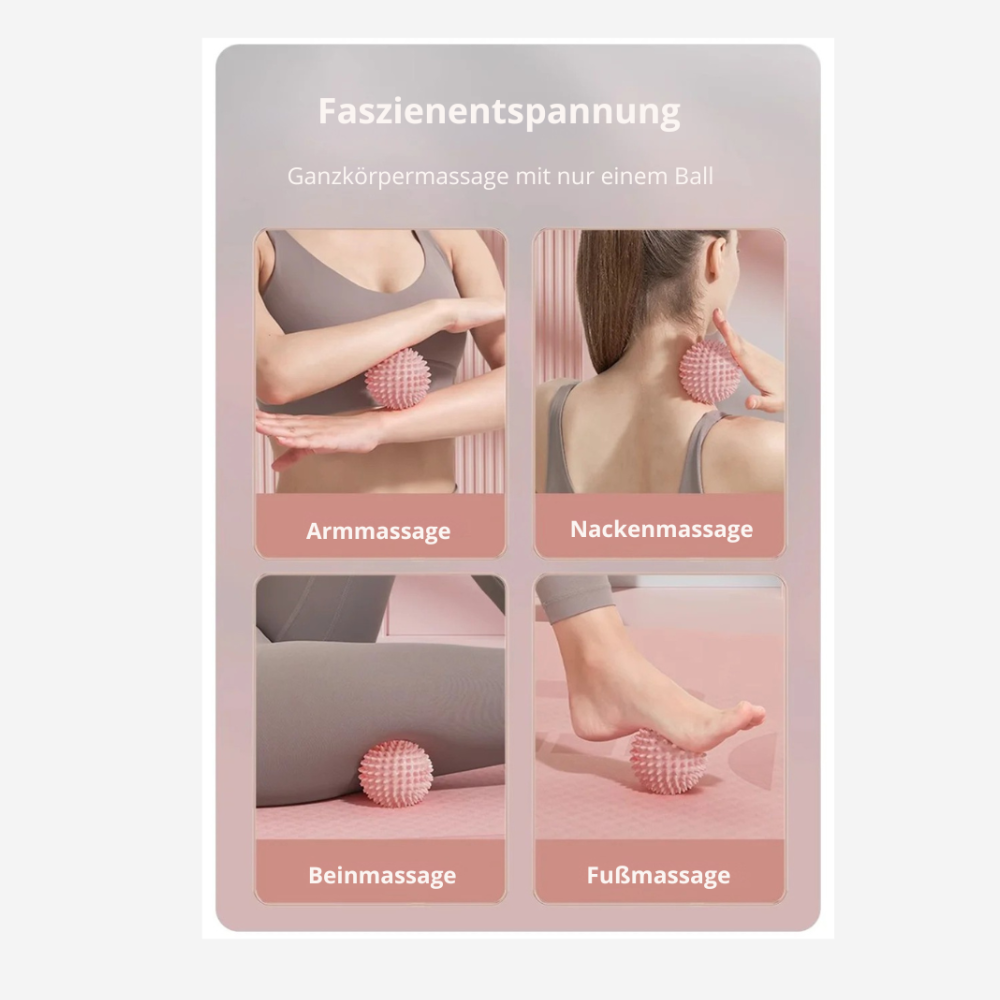 Ob im Büro, beim Sport oder auf Reisen – der Massageball ist klein, leicht und immer einsatzbereit. So kannst du deine Faszien jederzeit pflegen und die Muskulatur regenerieren – ganz ohne Strom oder Zubehör.
