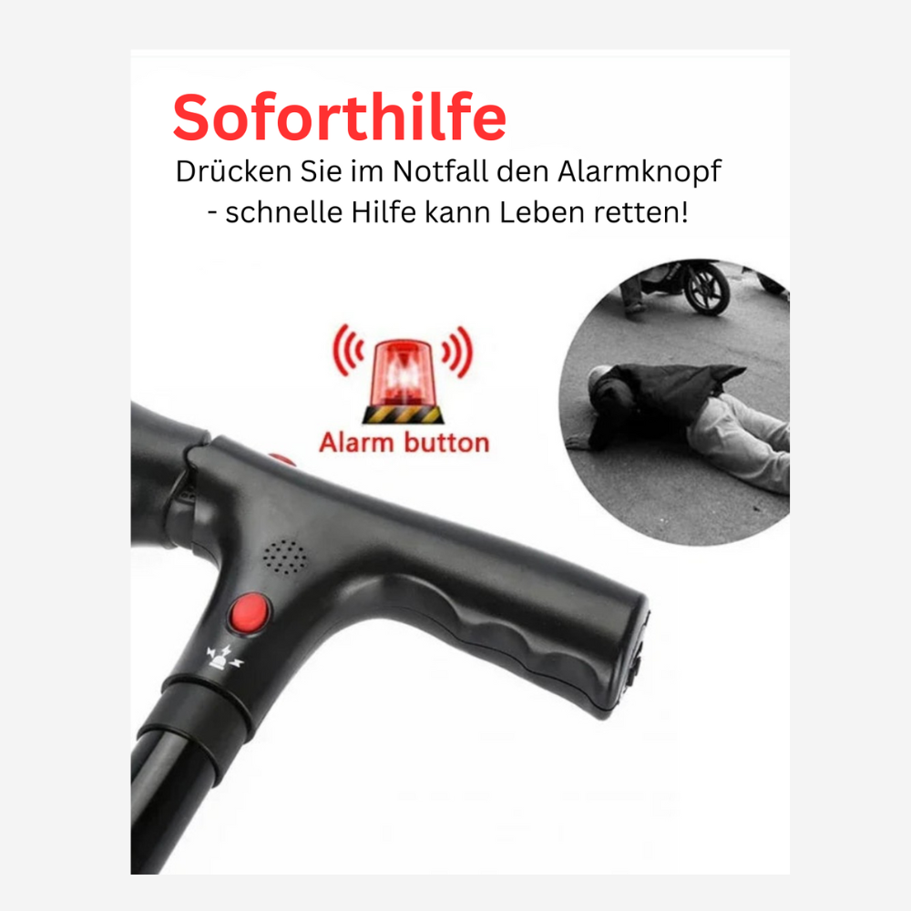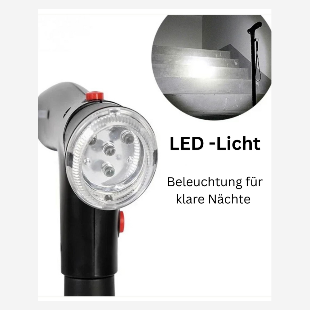 gibt dir maximale Sicherheit im Alltag. Die integrierteLED-Taschenlampe leuchtet dir den Weg im Dunkeln, während der eingebaute Notfallalarm bei Gefahr sofort für Aufmerksamkeit sorgt. Ideal für Senioren, Menschen mit Einschränkungen oder als Begleiter auf unsicheren Wegen.